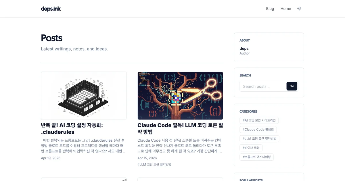 다크 모드 + 자동 목차 + 관련 포스트 그리드. 한국어 수익형 블로거를 위한 깔끔한 SEO 테마.